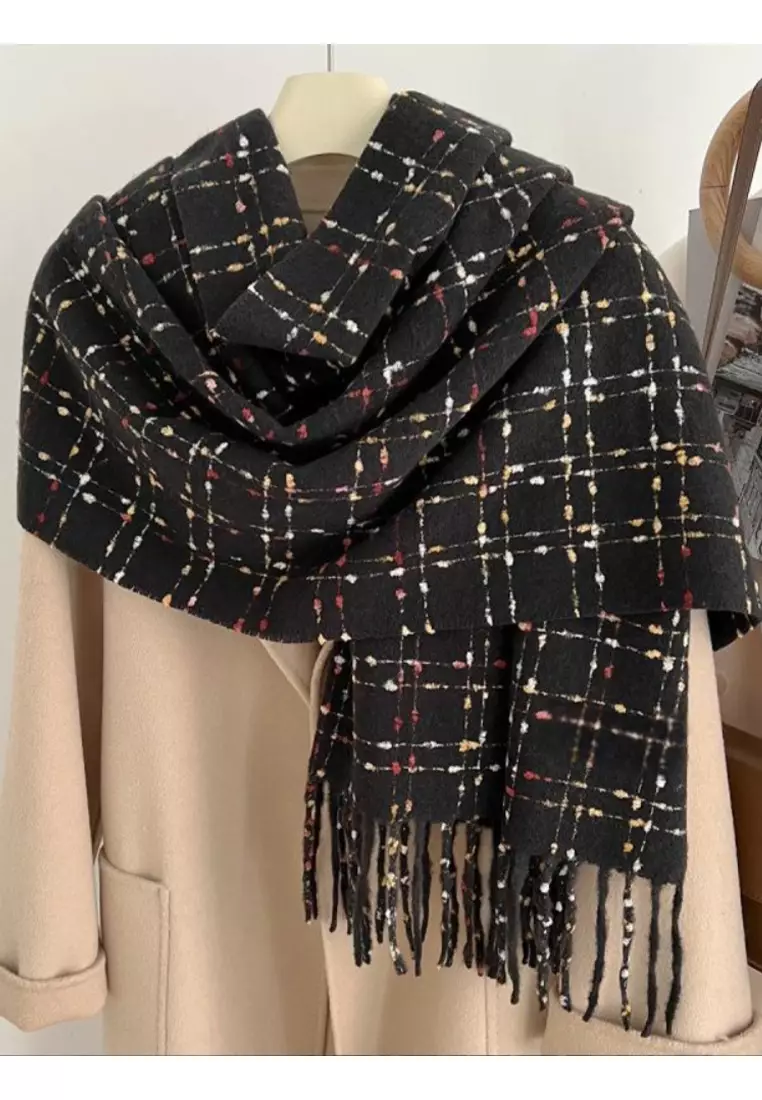Aksesoris Wanita Threadwork Loom Cashmere Pashmina Syal Wanita Black