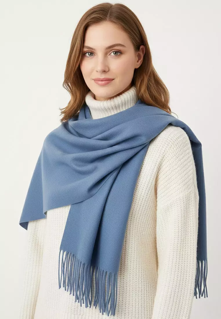 Aksesoris Wanita Virgin Wool Cashmere Shawl Syal Wanita Kasmir Denim Blue