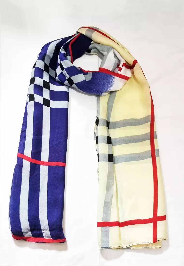 Checkered Poly.-Viscose Scarf Yellow & Blue