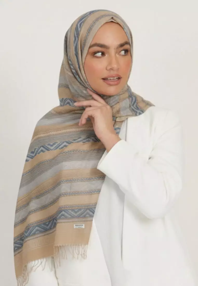 Hijab Pashmina Wanita Reversible Viscose Nomad Weave Pashmina Shawl Syal Wanita Blue Beige