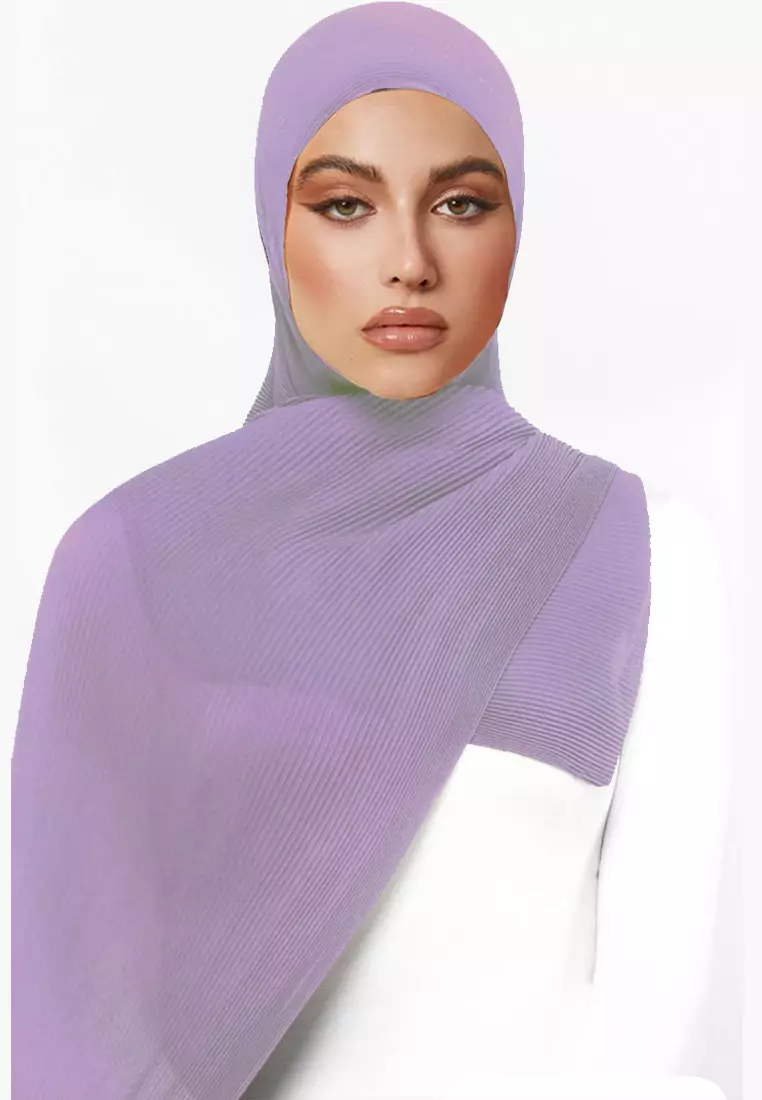Hijab Wanita Full Pleats Plain Shawl Syal Wanita Plisket Lavender
