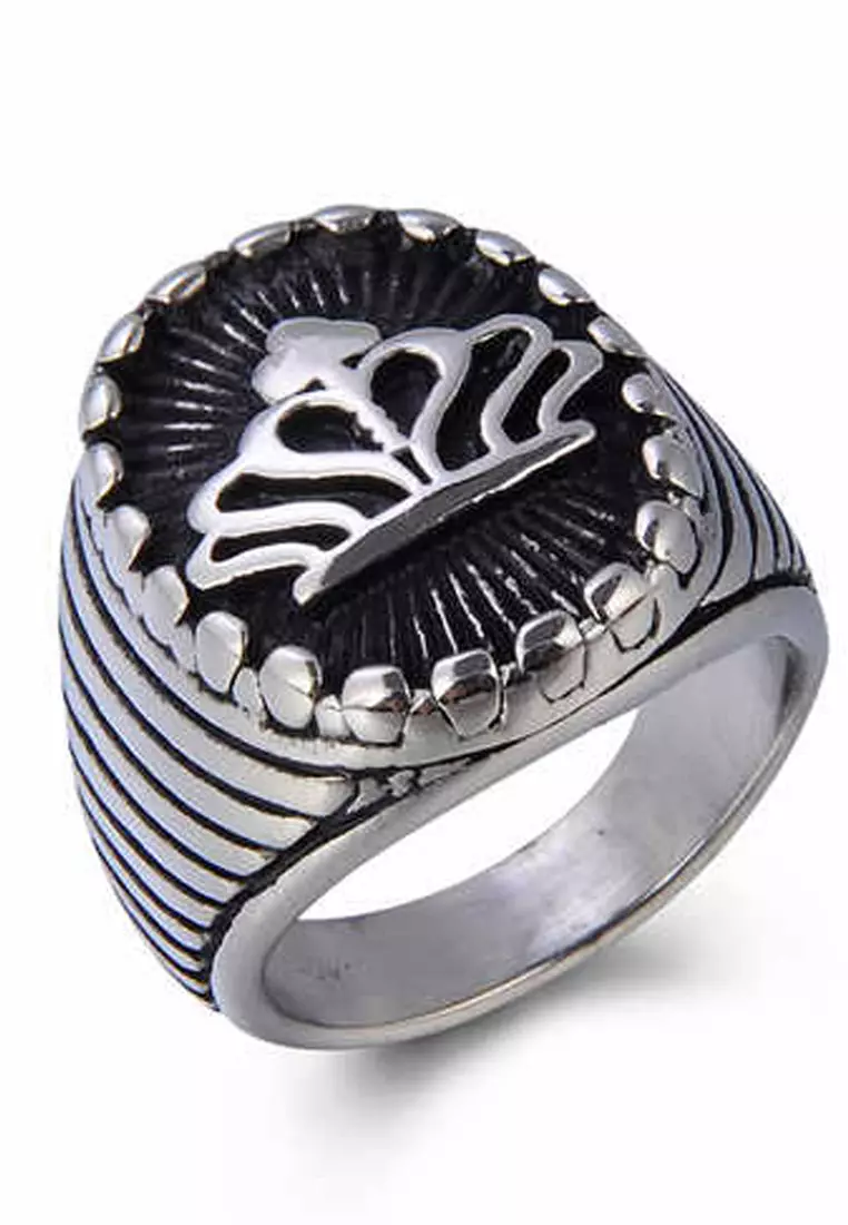 Men's Accessories Round Crown Premium Stainless-Steel Cincin Pria Ring Silver