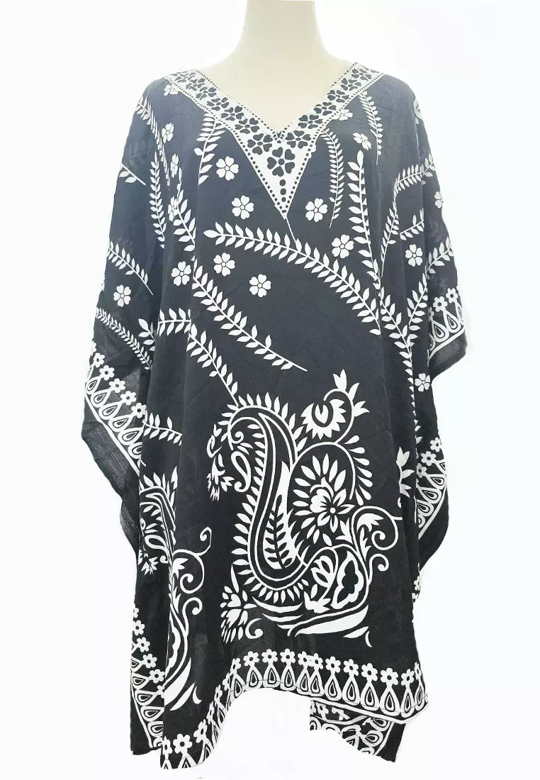 Pakaian Wanita Poly Printed Kaftan Dress Wanita Black & White