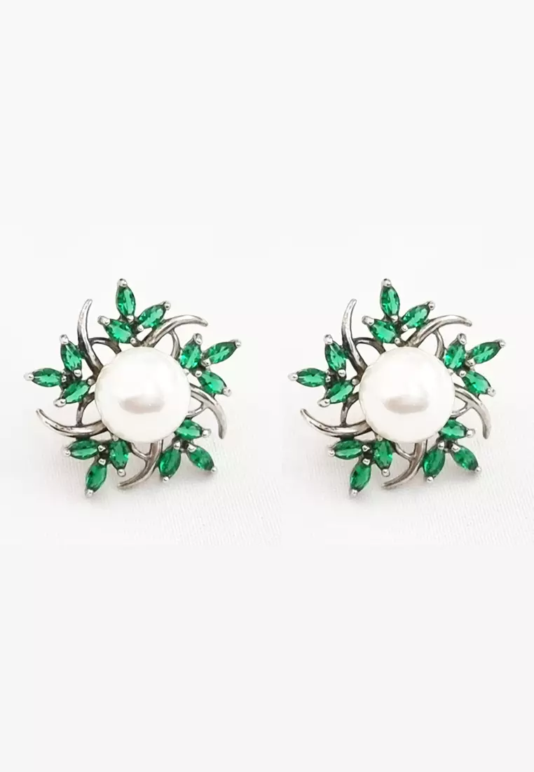 Petals Pearls Swarovski Earrings Green