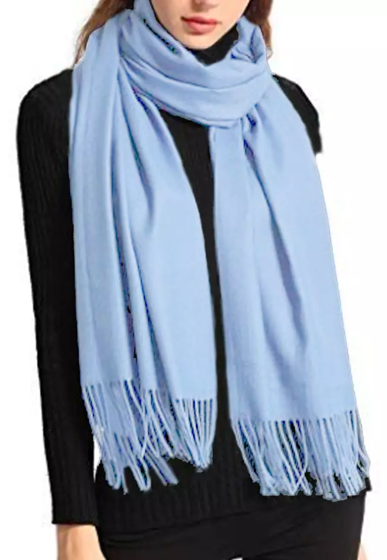 Plain Cashmere Virgin wool Pashmina Syal Wanita Baby Blue