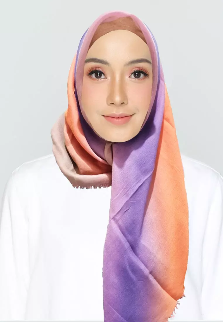 Rainbow Square Scarf Hijab Segi Empat Gradasi Pelangi Orange & Purple