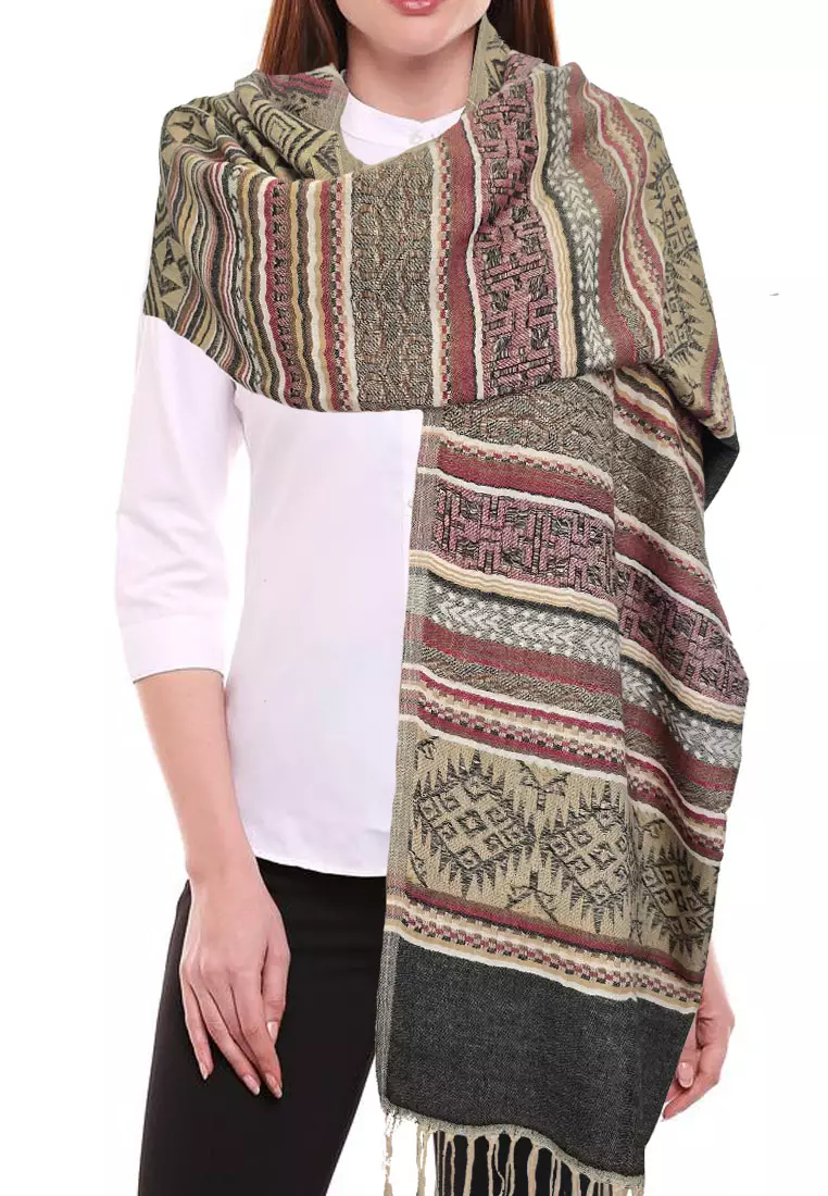 San MarcoReversible Viscose Ethinic Stripes Pattern Pashmina Shawl Syal Wanita Black, Beige & Maroon395000.00259000.00