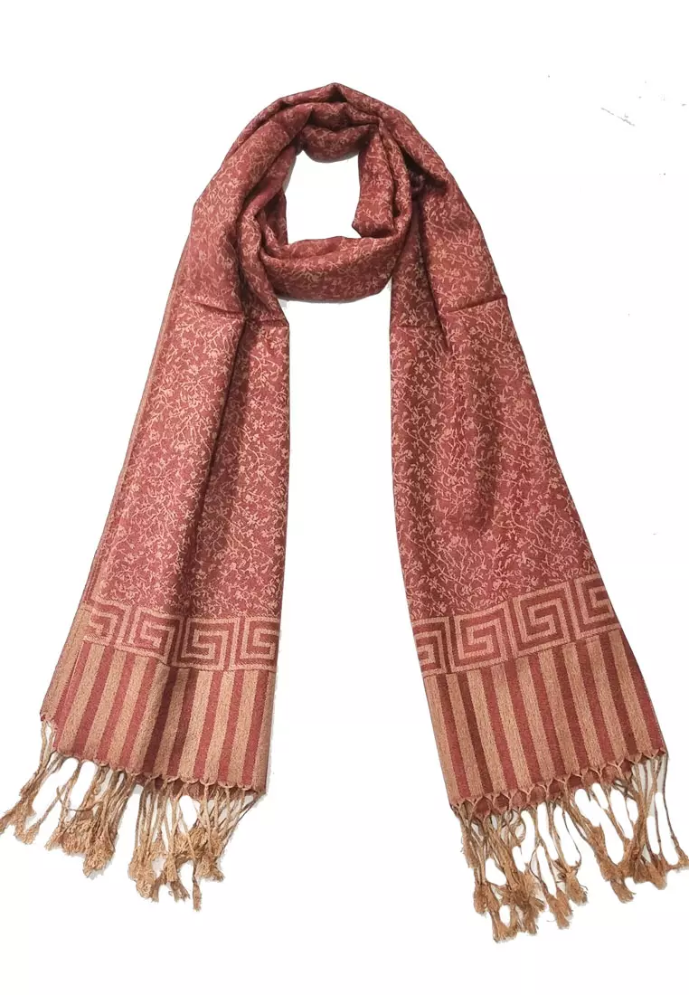 Reversible Viscose Floral Pattern Pashmina Shawl Syal Wanita Saffron Red