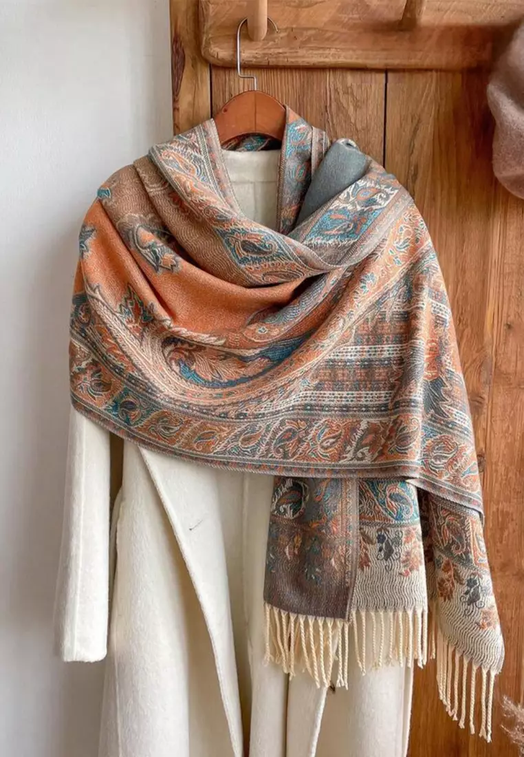 San MarcoSyal Wanita Reversible Paisley Pattern Cashmere Pashmina Shawl Teal Sand565000.00495000.00
