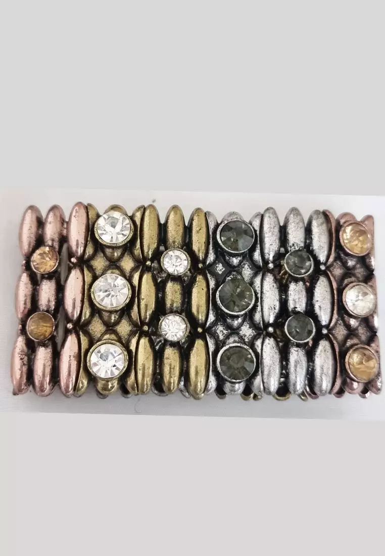 Tricoloured Elastic Diamante Bracelet Gelang Wanita Silver
