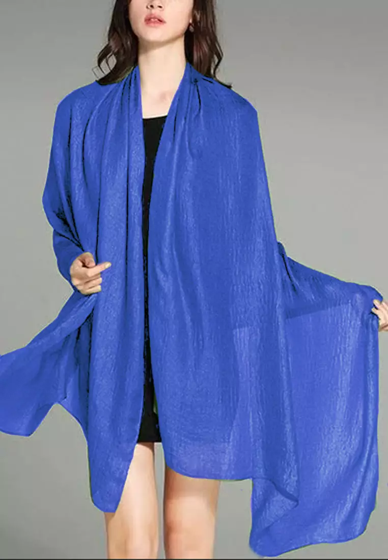 Women's Accessories Plain Silk-Feel Shawl Syal Wanita Sutra Polos Royal Blue