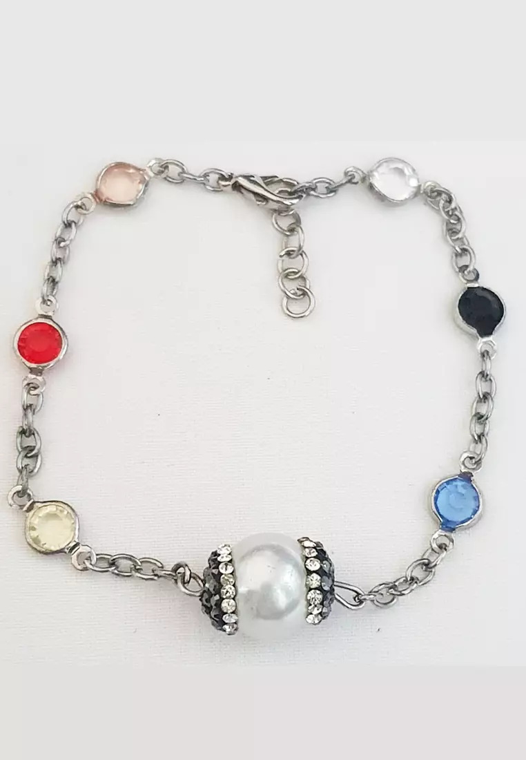 Yahana Pearly Colourful Stones Bracelet Silver