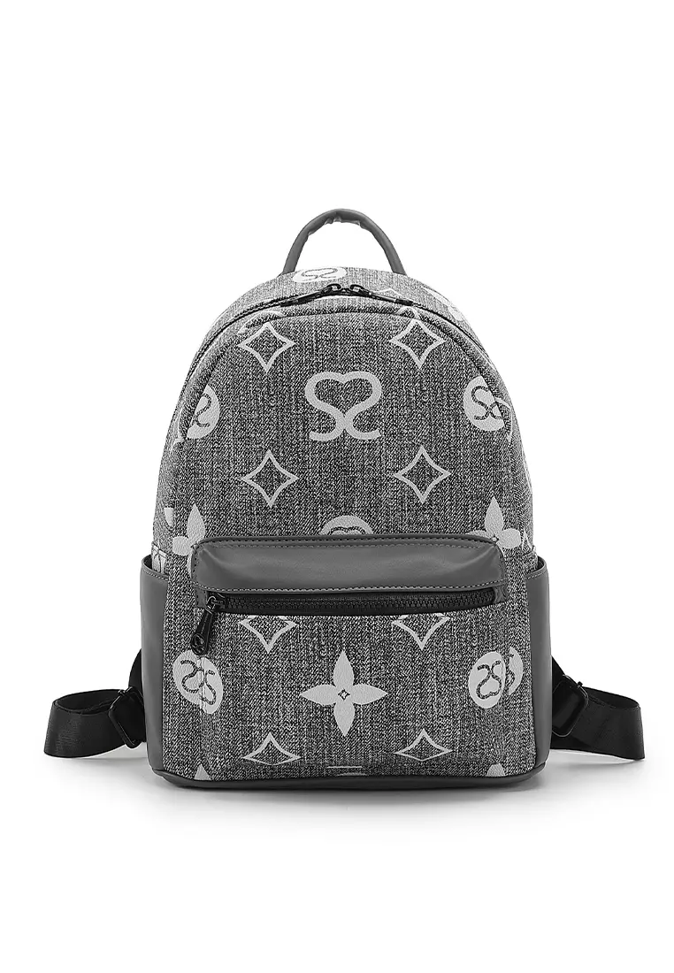 Women's Monogram Backpack (Tas Ransel Wanita / Tas Punggung Wanita) - Abu-Abu