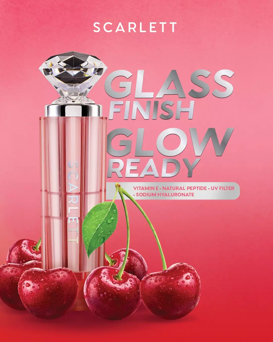 [NEW] SCARLETT GLASS GLOW TINTED LIP BALM JUICY CHERRY - Moisturizing & hydrating, natural lip color, plumpy lips, cover bibir gelap, mencerahkan bibir, UV Filter