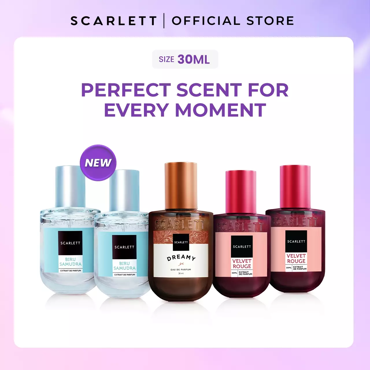 Scarlett Whitening Eau De Parfum size 30ml (Bundling 5.2) - 2pcs Biru Samudra, 2pcs Velvet Rouge, 1pcs Dreamy