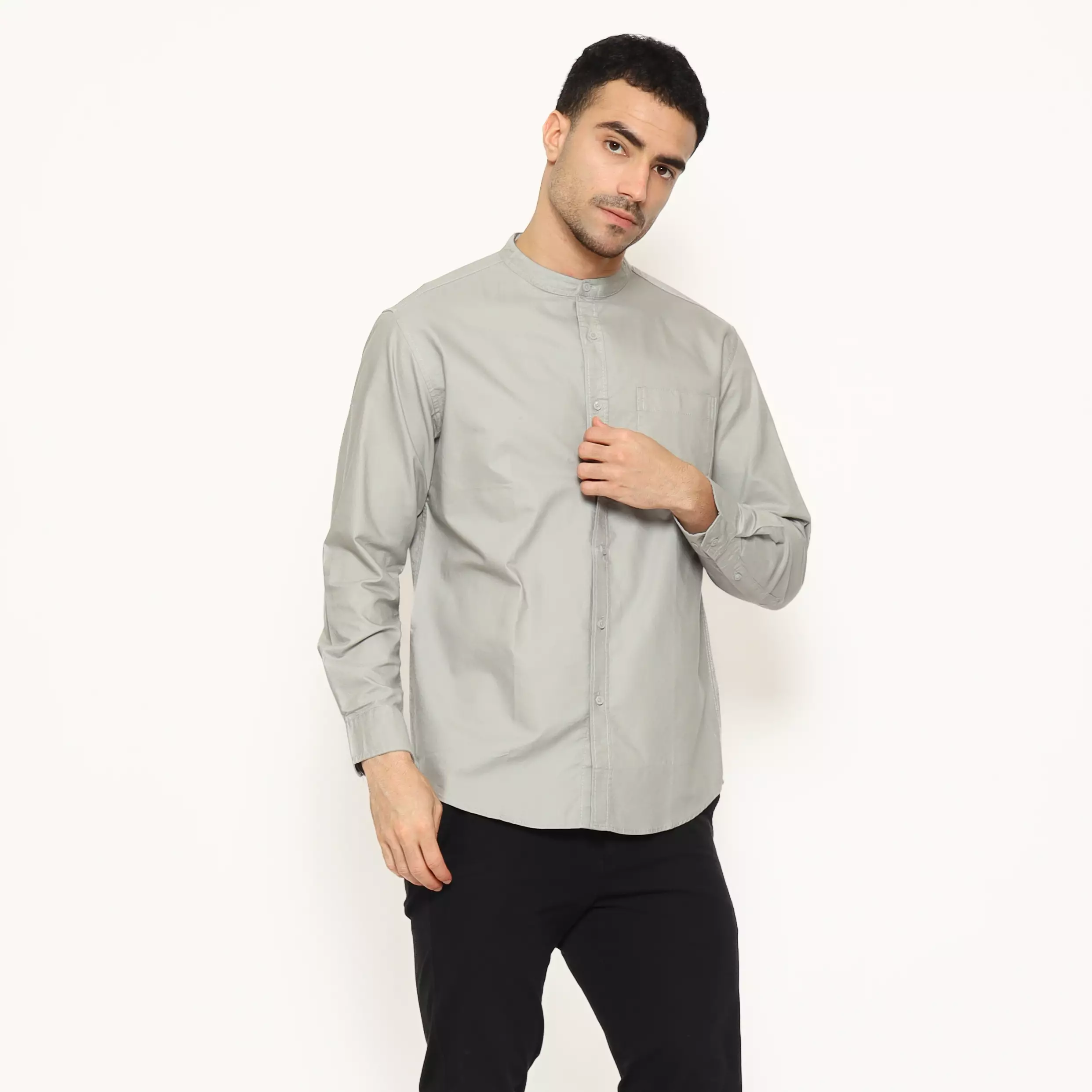 Schoeller Baju Koko Pria Lengan Panjang Warna Light Grey | SHQKCLKKQO102QCTNQNM