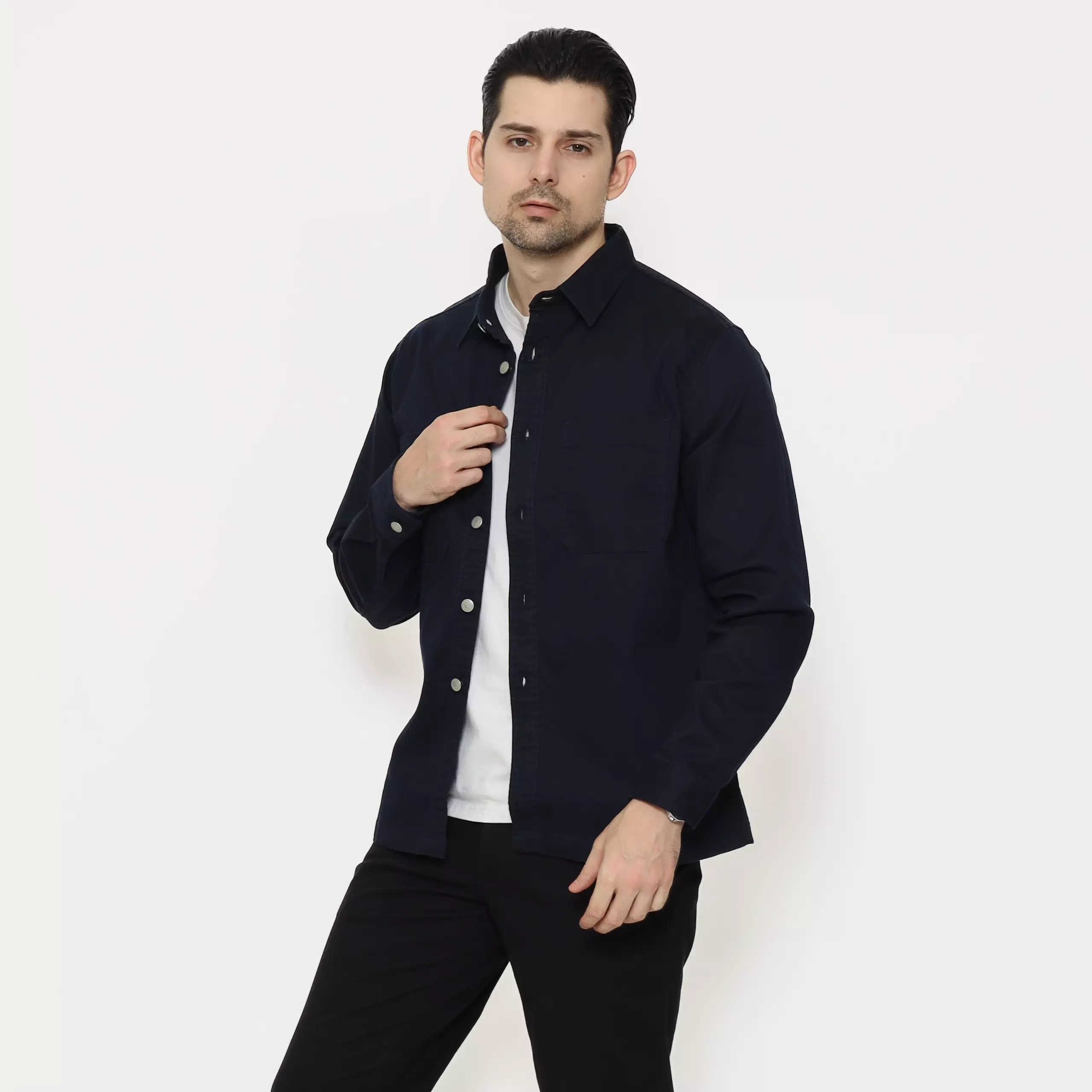 SCHOELLER JON-K6 Jaket Casual Pria Regular Fit Cotton Stretch Warna Navy