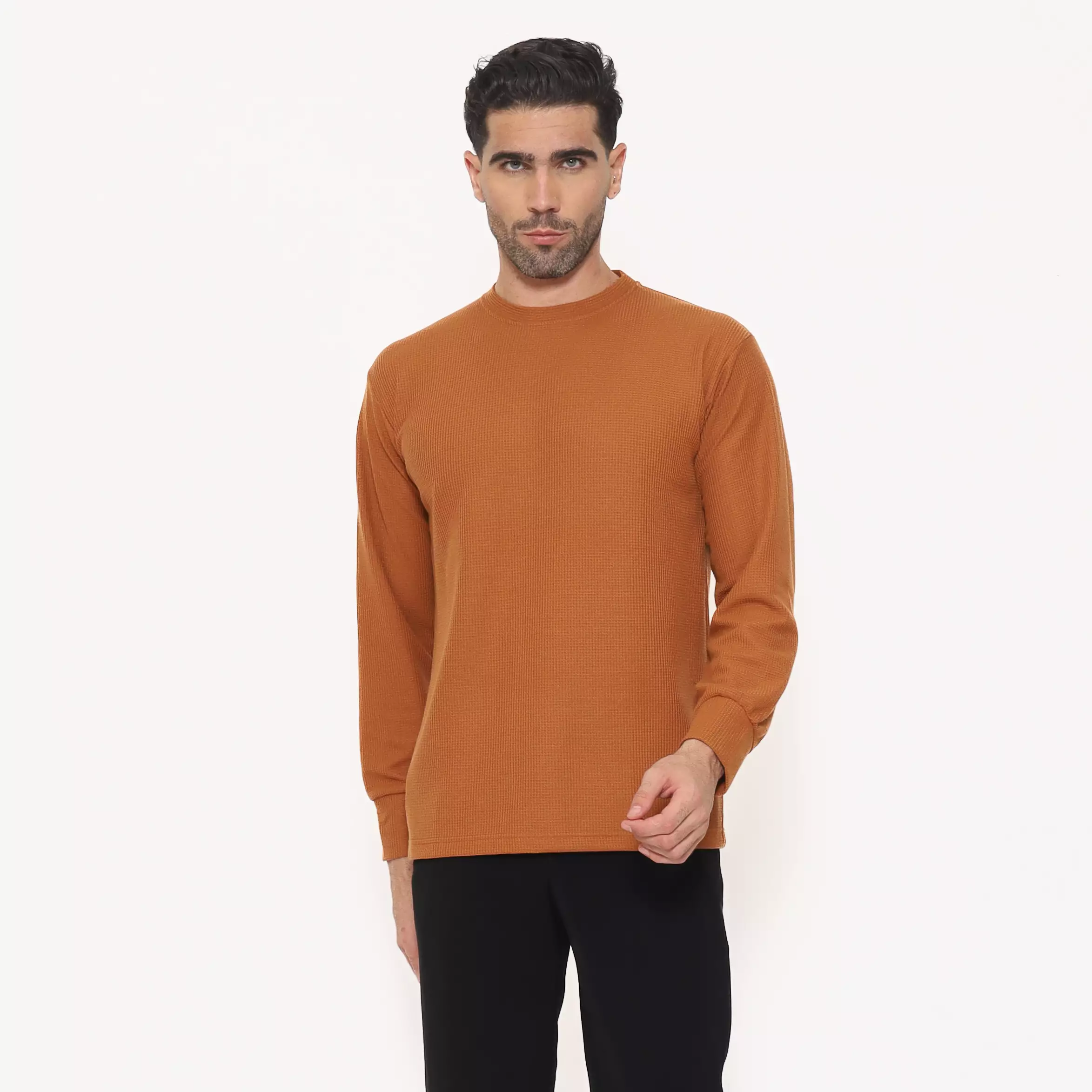 Schoeller Kaos Pria Lengan Panjang Regular Fit WILFRED-R – Terracotta | Katun Waffle Knit Premium Polos