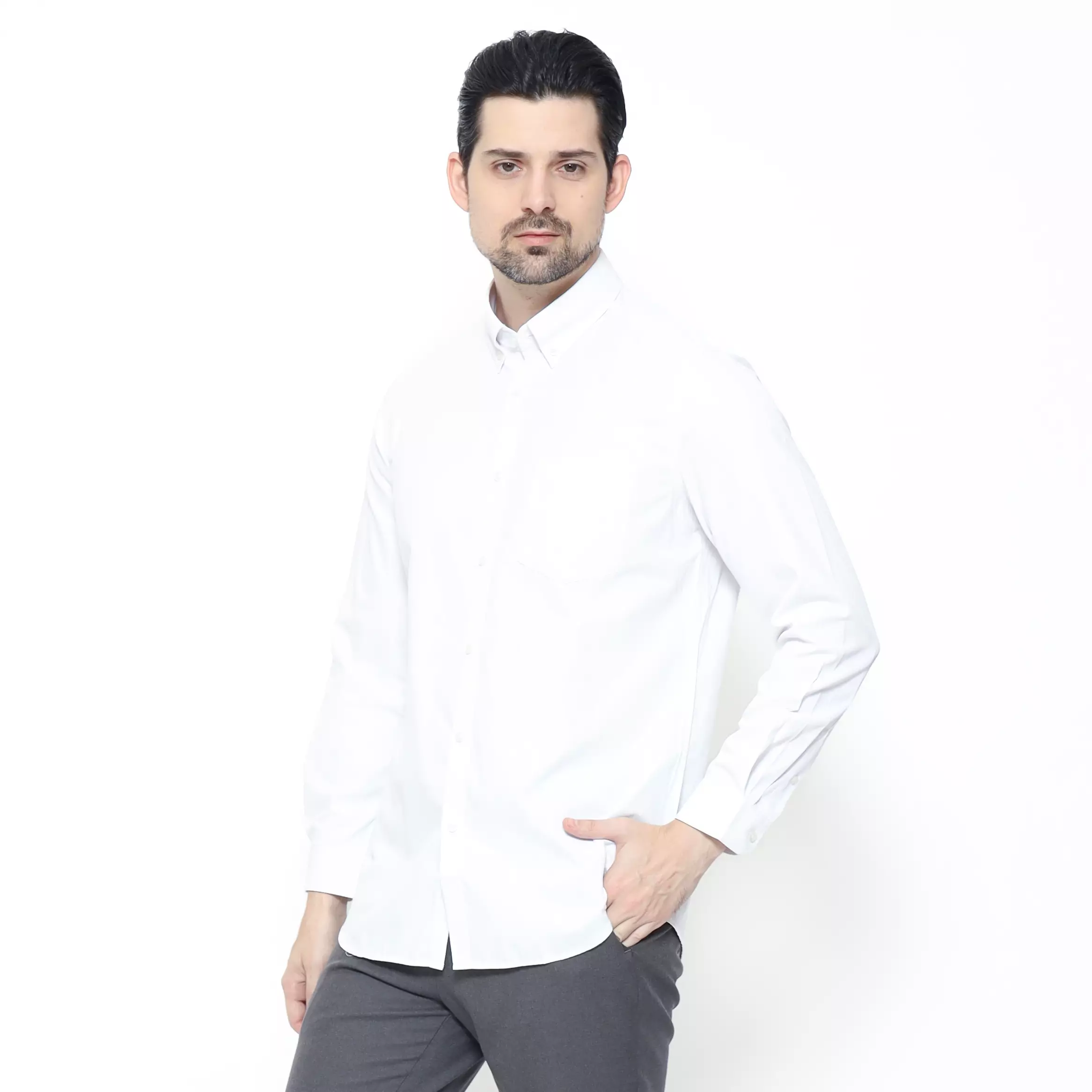 Schoeller Kemeja Formal Pria Slim Fit Polos Putih – Button Down – DEMPSEY-MLNS
