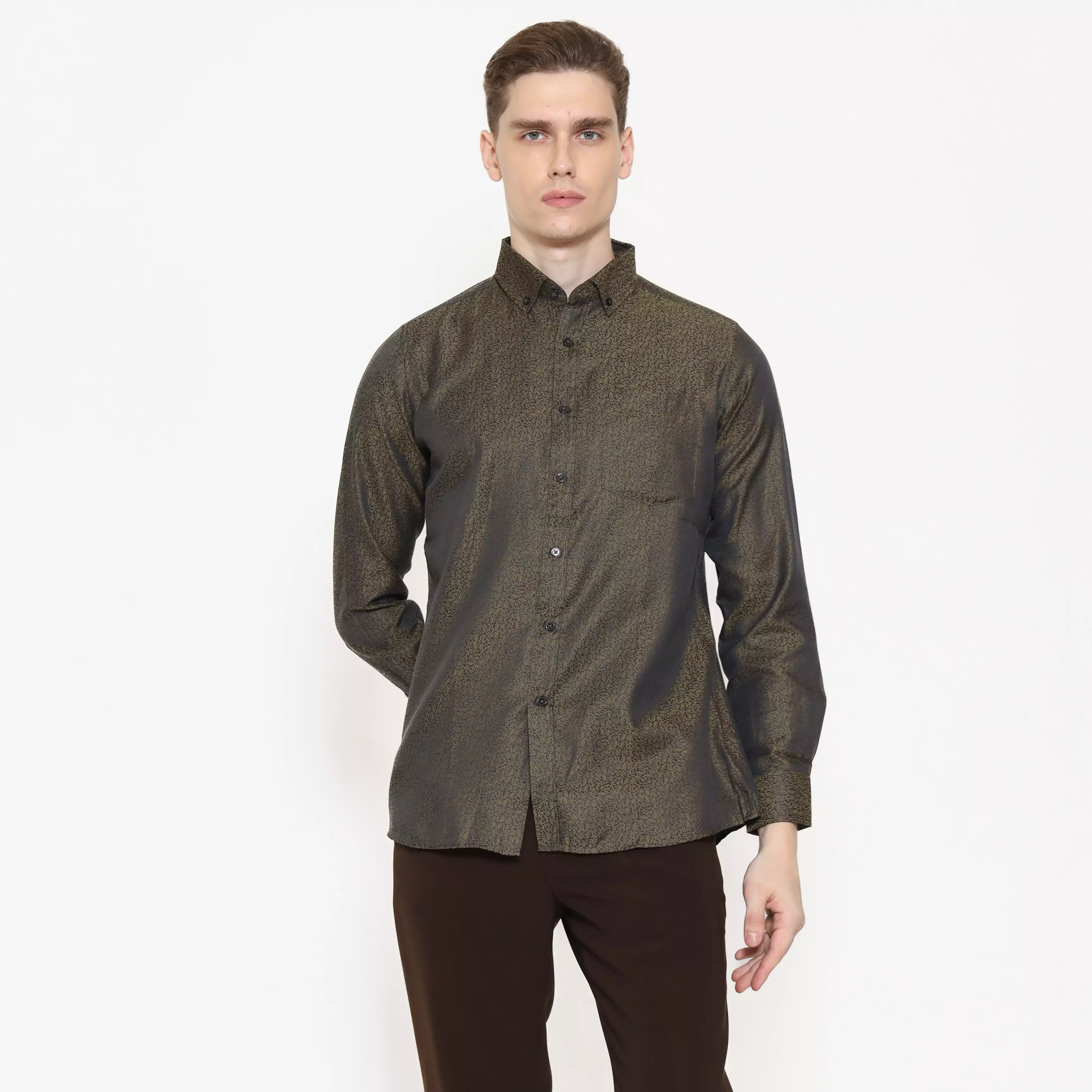 Schoeller Kemeja Pria Lengan Panjang Slim Fit Motif Abstrak Warna Olive – SHQKFLSFQP101QCTNQNM