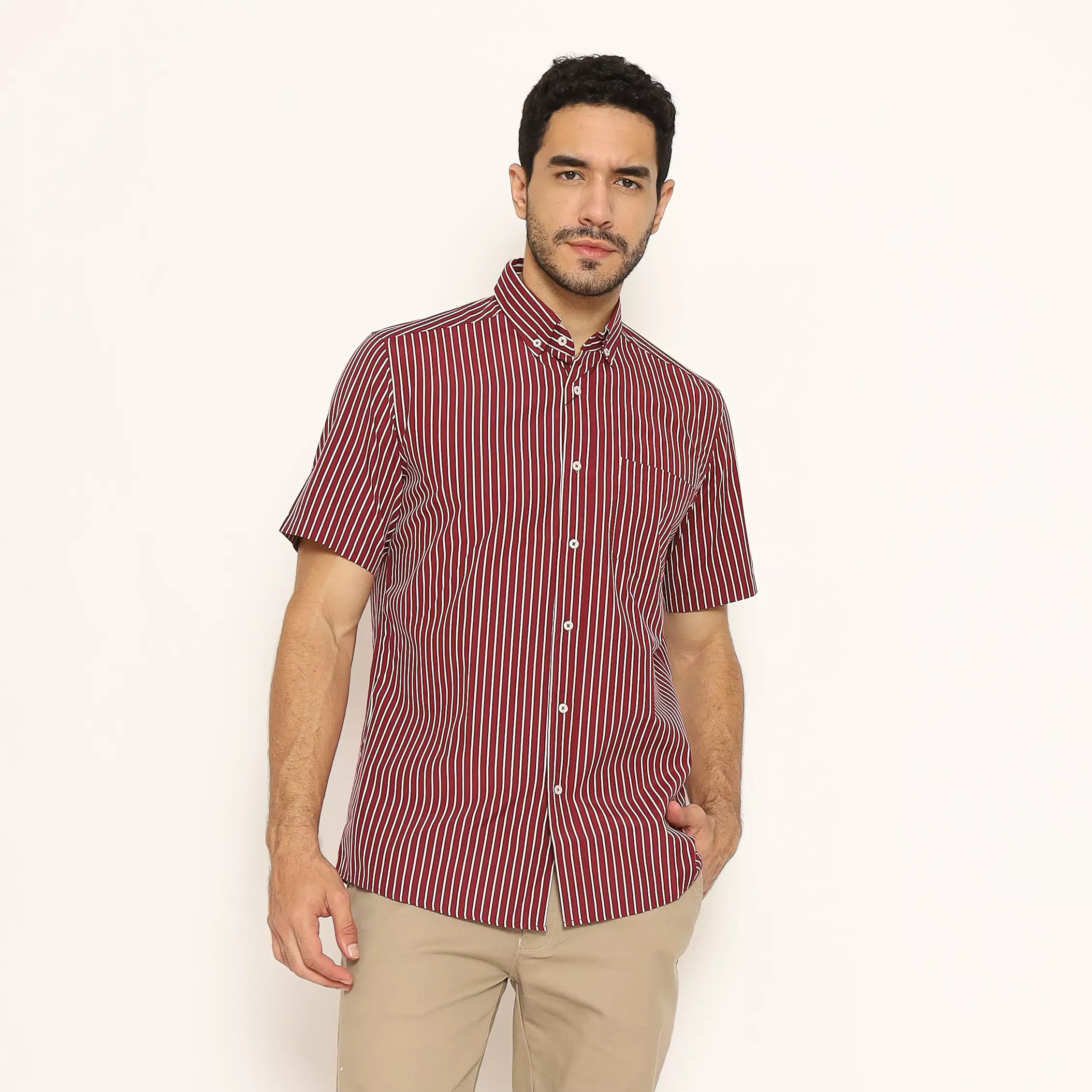 Schoeller Kemeja Pria Lengan Pendek Slim Fit Motif Garis Warna Maroon –Tiago