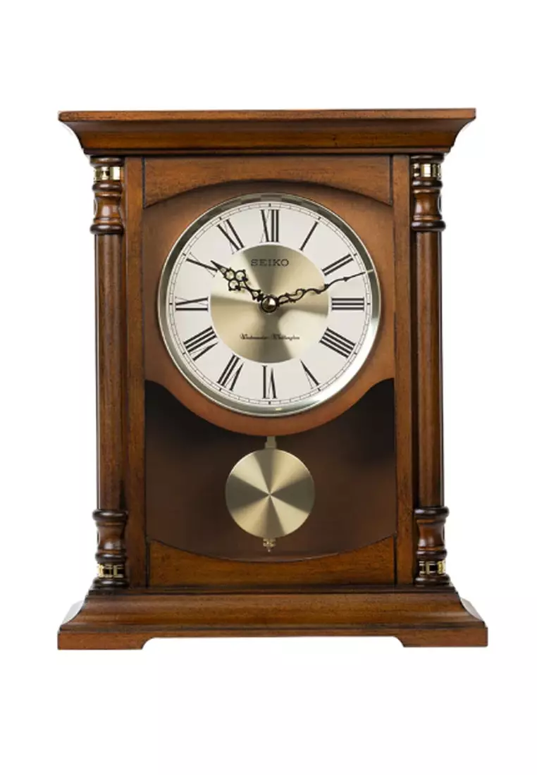 SeikoJam Meja Seiko QXQ034 QXQ034B Wooden Case Wiping Brown Color Gold White Dial Chimes Pendulum Standing Mantel Clock Original Garansi Resmi2574000.001945000.00