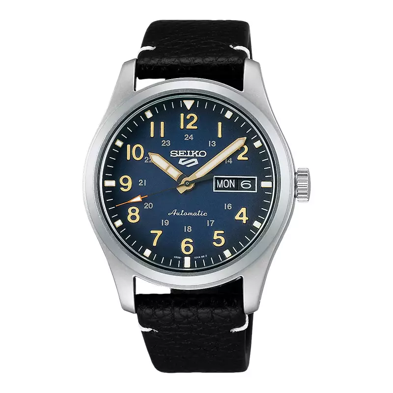Jam Tangan Pria Seiko 5 Sports SRPG39K1 Field Specialist Style Automatic Blue Dial Black Leather Strap