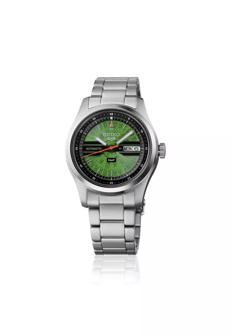 Jam Tangan Pria Seiko 5 Sports SRPM09 SRPM09K1 HUF Limited Edition Automatic Strap Stainless Steel Silver Color Green Dial Original Garansi Resmi