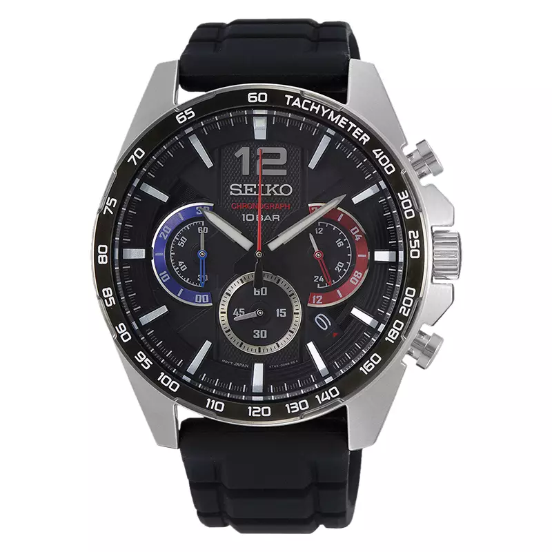 Jam Tangan Pria Seiko Chronograph SSB347P1 Neo Sport Black Dial Black Rubber Strap