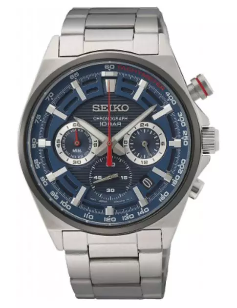 Jam Tangan Pria Seiko Chronograph SSB407 SSB407P1 Strap Stainless Steel Silver Color Quartz Watch Blue Color