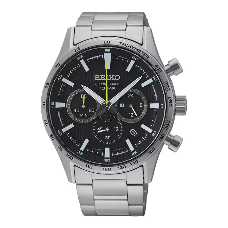 Jam Tangan Pria Seiko Chronograph SSB413P1 Discover More Black Dial Stainless Steel Strap