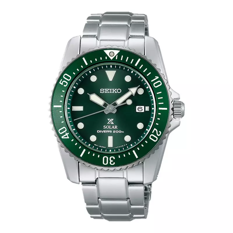 Jam Tangan Pria Seiko Prospex SNE583P1 Solar Divers 200M Green Dial Stainless Steel Strap