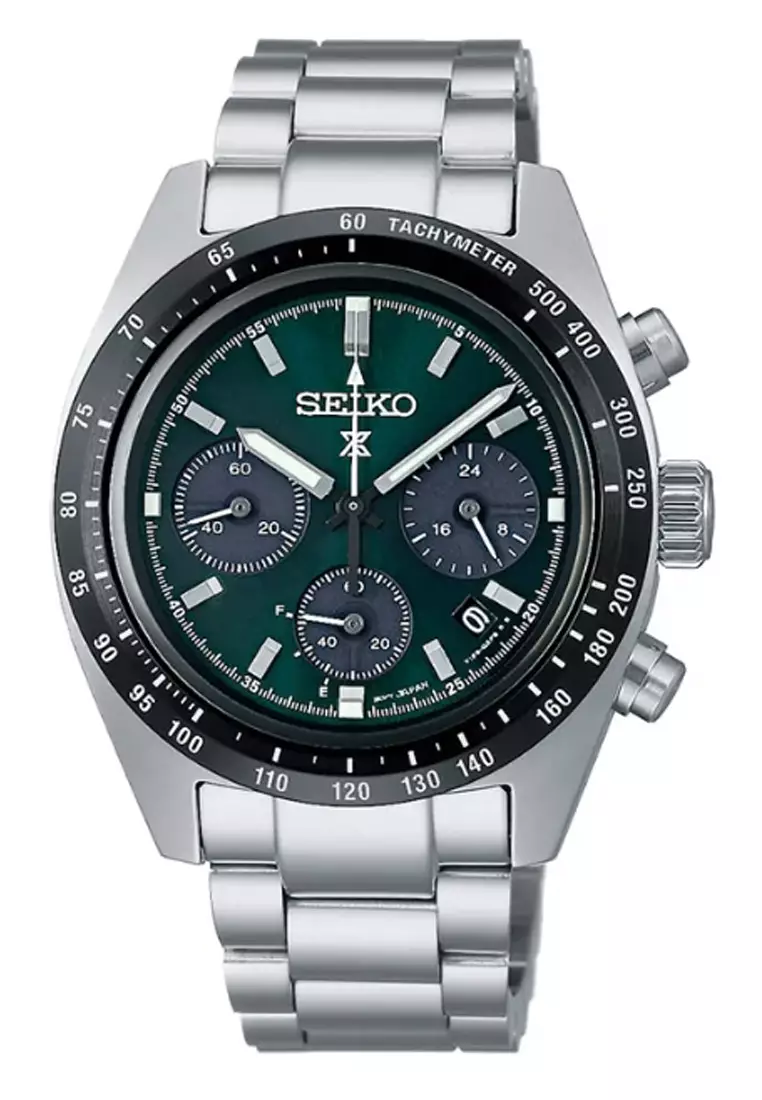 Jam Tangan Pria Seiko SSC933 SSC933P1 Strap Stainless Steel Silver Green Dial Speedtimer SeiTona Solar Chronograph Prospex Original Garansi Resmi