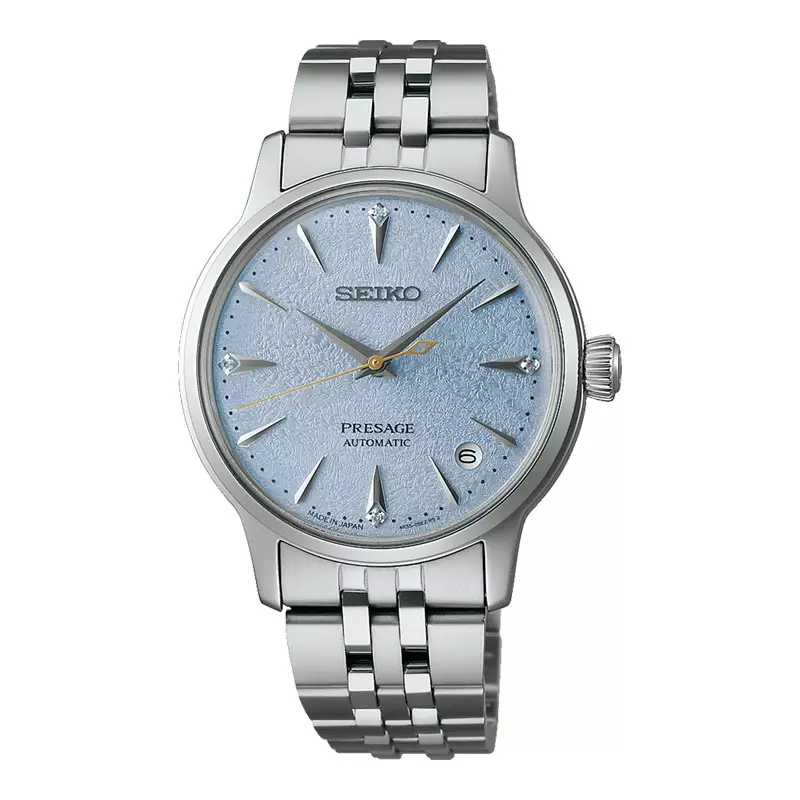 Jam Tangan Wanita Seiko Presage SRPL61J1 Frozen Skydiving Diamond Cocktail Light Blue Dial Stainless Steel Strap