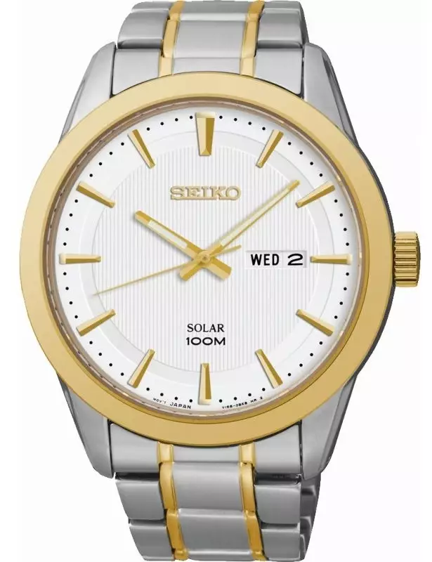 Seiko Men Solar SNE364P1 Silver Gold Stainless Steel