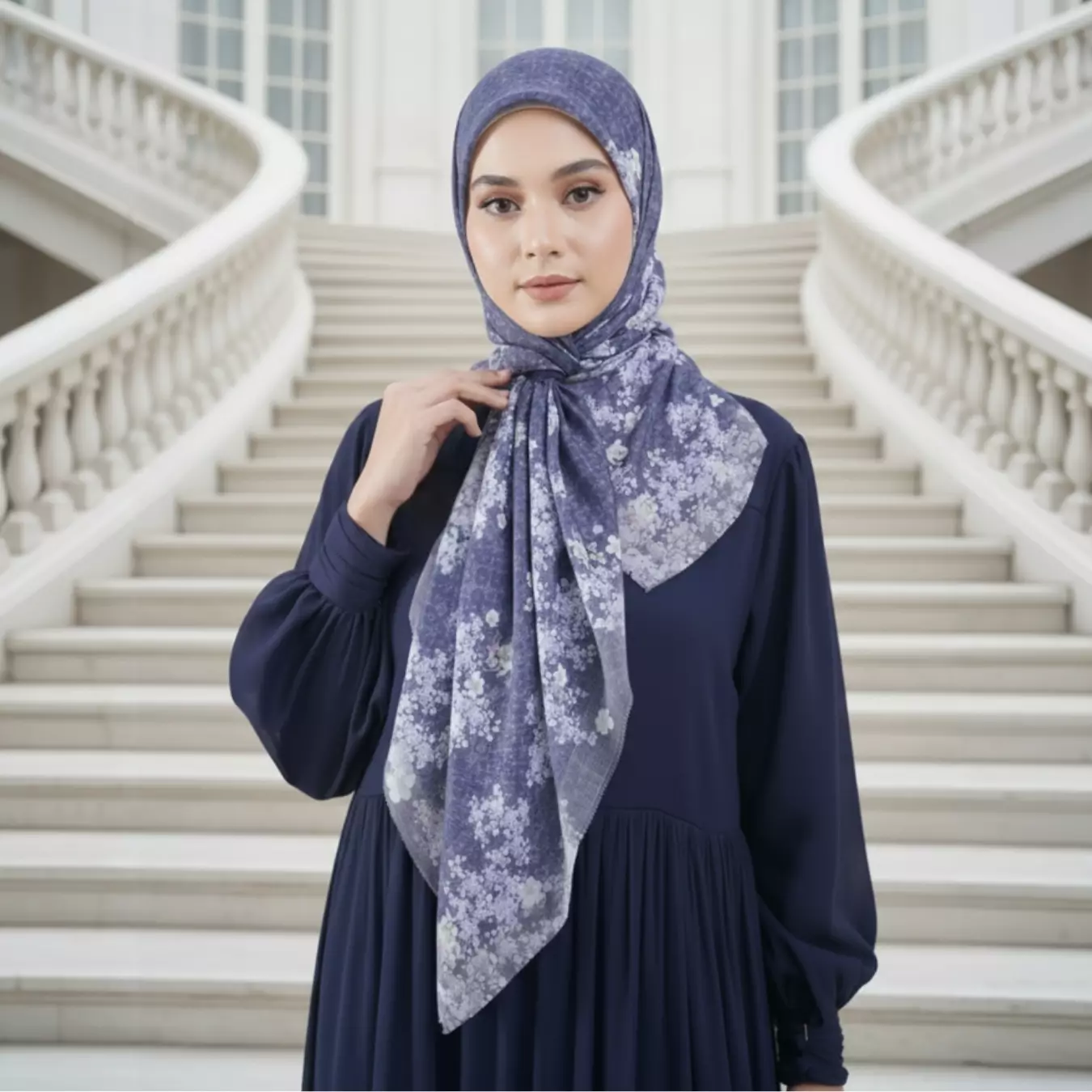 Cassya Printed Scarf Navy | Hijab Kerudung Segi Empat Motif