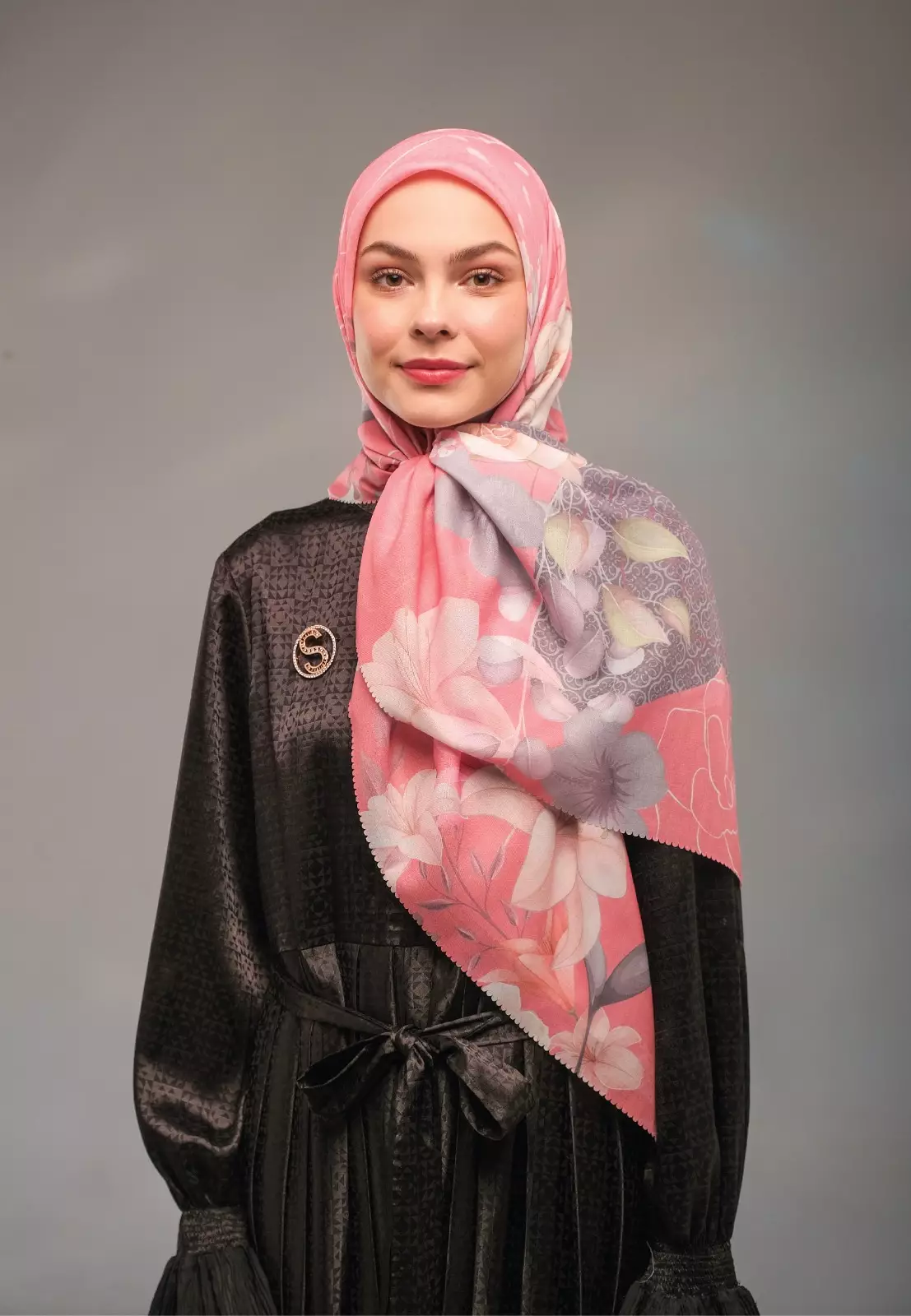 Izara Printed Scarf Pink | Hijab Segi Empat Motif