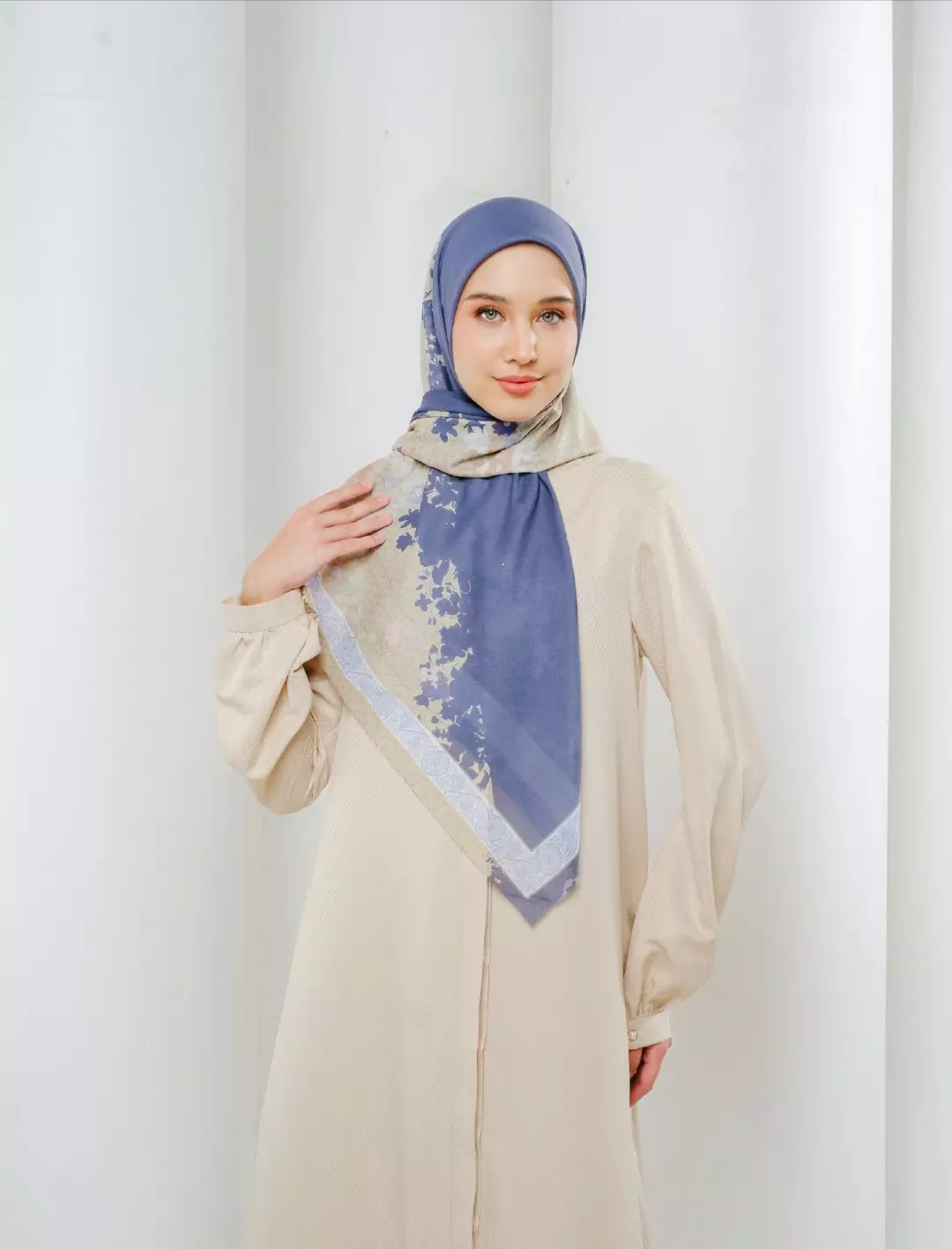 Linzy Printed Scarf Turkish Blue | Hijab Kerudung Segi Empat Motif