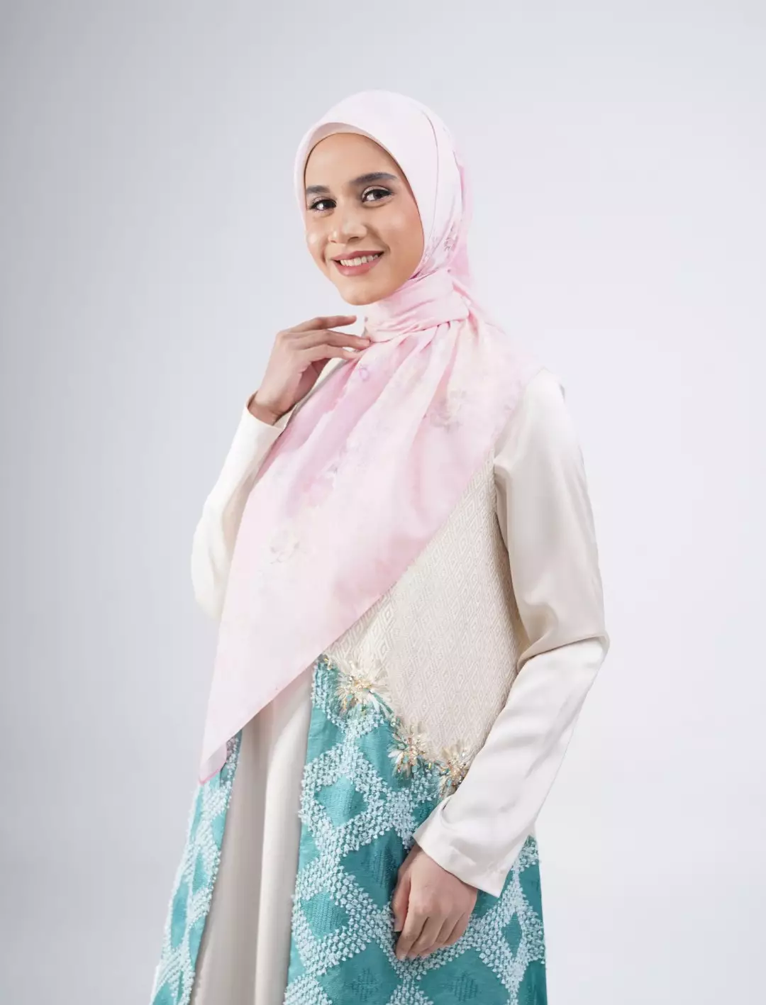 Niomy Printed Scarf Light Pink | Hijab Kerudung Segi Empat Motif