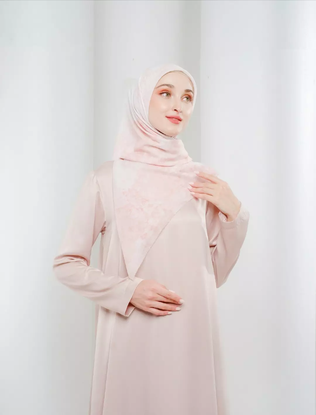 Percy Printed Scarf Light Peach | Hijab Kerudung Segi Empat Motif