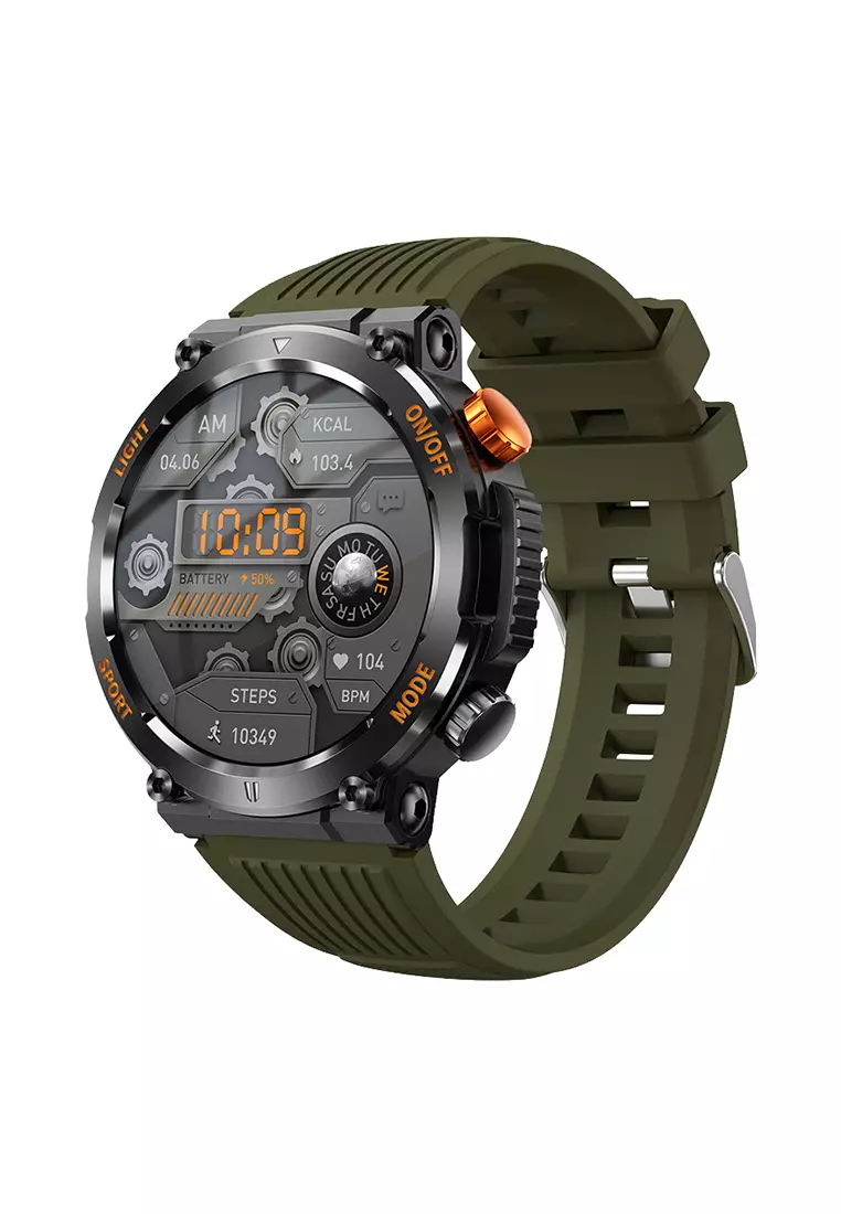 SmartWatch HT17 Anti Air Layar Terang 1.46'' Olahraga Monitor Detak Jantung Music Lampu LED Jam Tangan Pria green