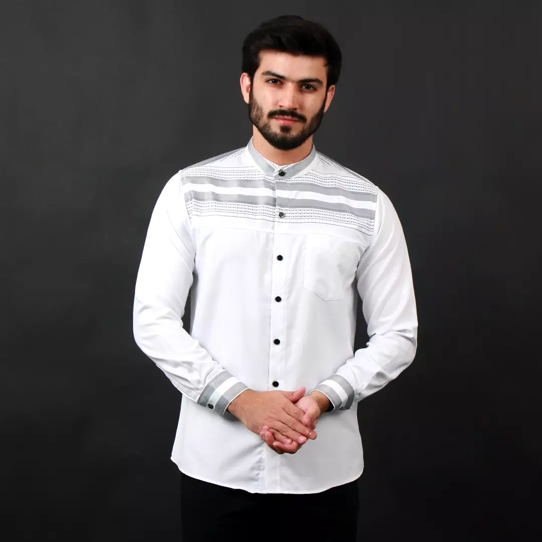 - Leher: Kerah Mandarin