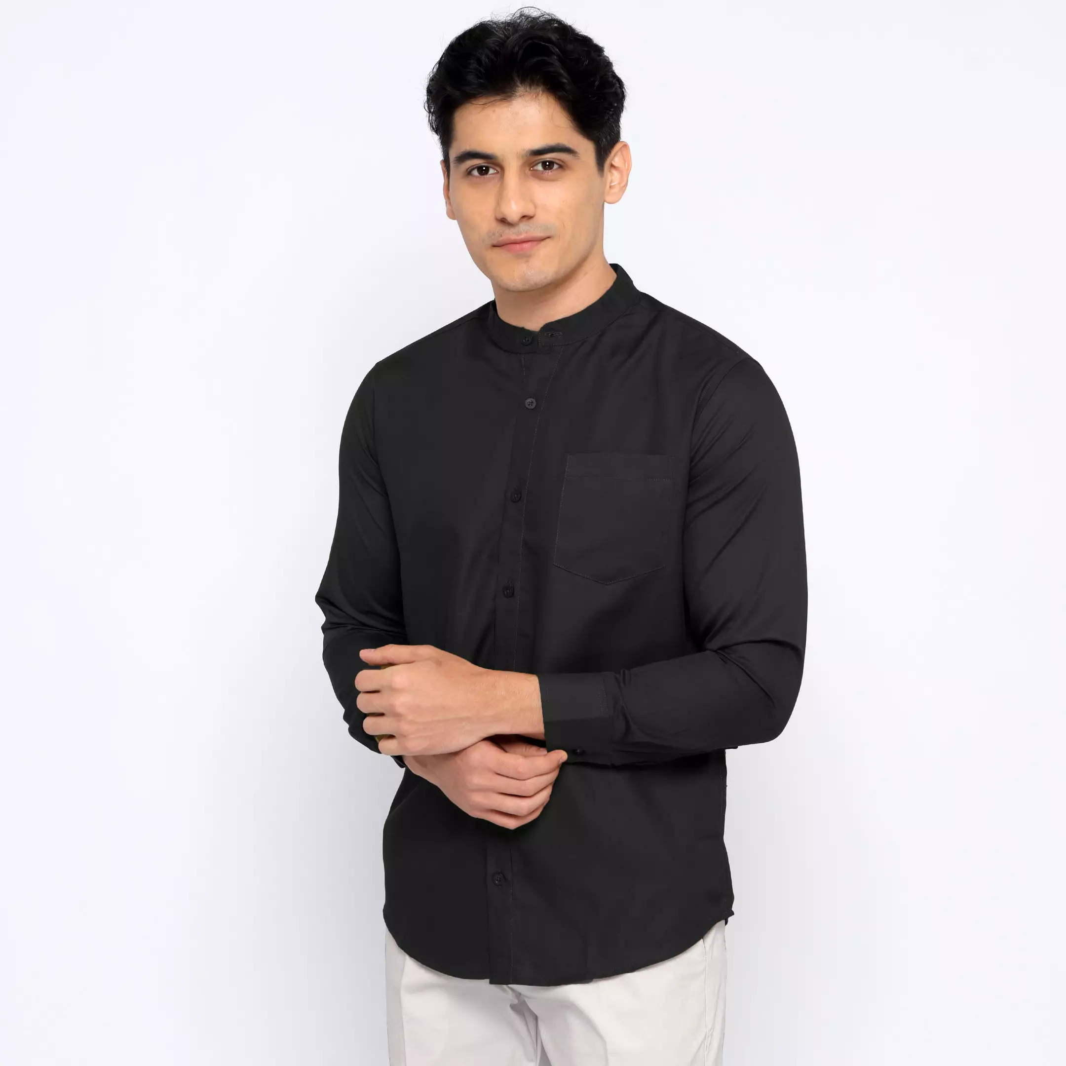 Simple PerfectCasella Kemeja Pria Lengan Panjang Kerah Shanghai Polos Basic 7721 Black399900.00