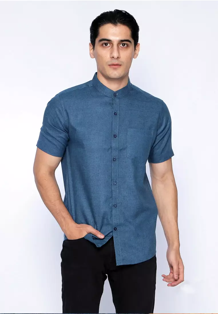 Simple Perfect Kemeja Pria Lengan Pendek Kerah Shanghai Solid Basic 2255 Deep Blue