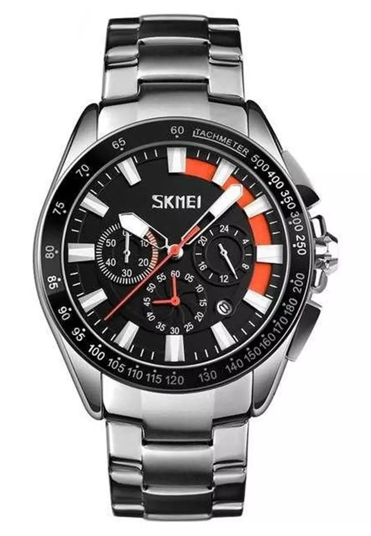 SKMEIJam Tangan Analog Pria Strap Stainless Steel Stopwatch Waterproof 30m Minute Second Dial Calendar 0077 ORIGINAL1902500.00761000.00