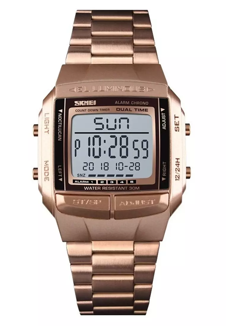 Jam Tangan Kasual Digital Pria Waterproof 30m Strap Tali Material Stainless Steel UU01 ORIGINAL