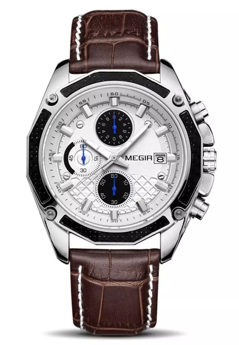 MEGIR Jam Tangan Kasual Analog Pria Waterproof Strap Tali Material Kulit Leather JL06 ORIGINAL