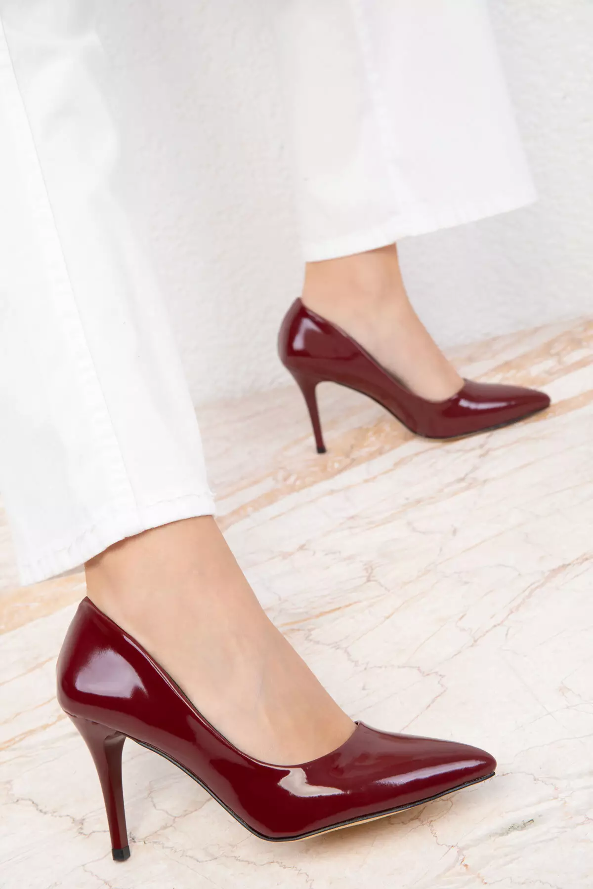 Claret Red Patent Leather 19550 Model Classic Women's Heeled Shoes