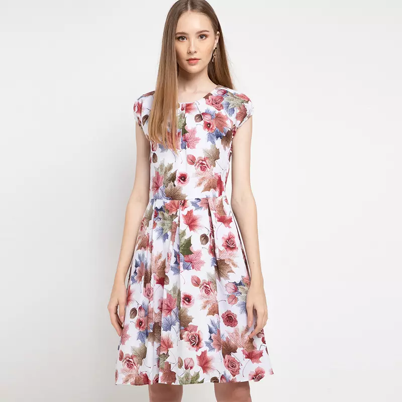 Sophistix Eliza Dress In Off White Peach Rose Floral Print