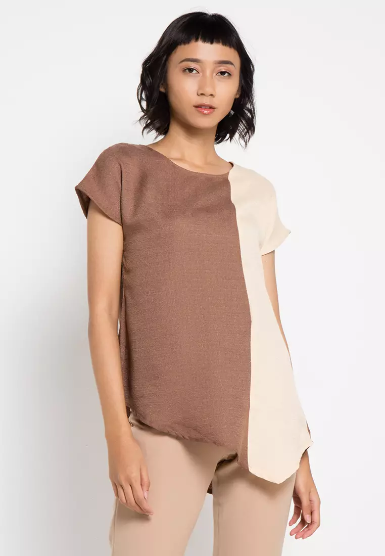 Spohistix Nola Assymetrical Blouse in Beige and Brown